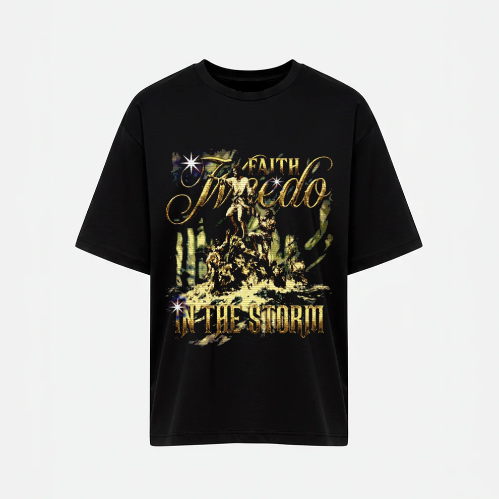 "Construido en fe. Forjado en tormentas." Camiseta Oversized fit. Algodón PIMA. 250 G. Estampado principal...